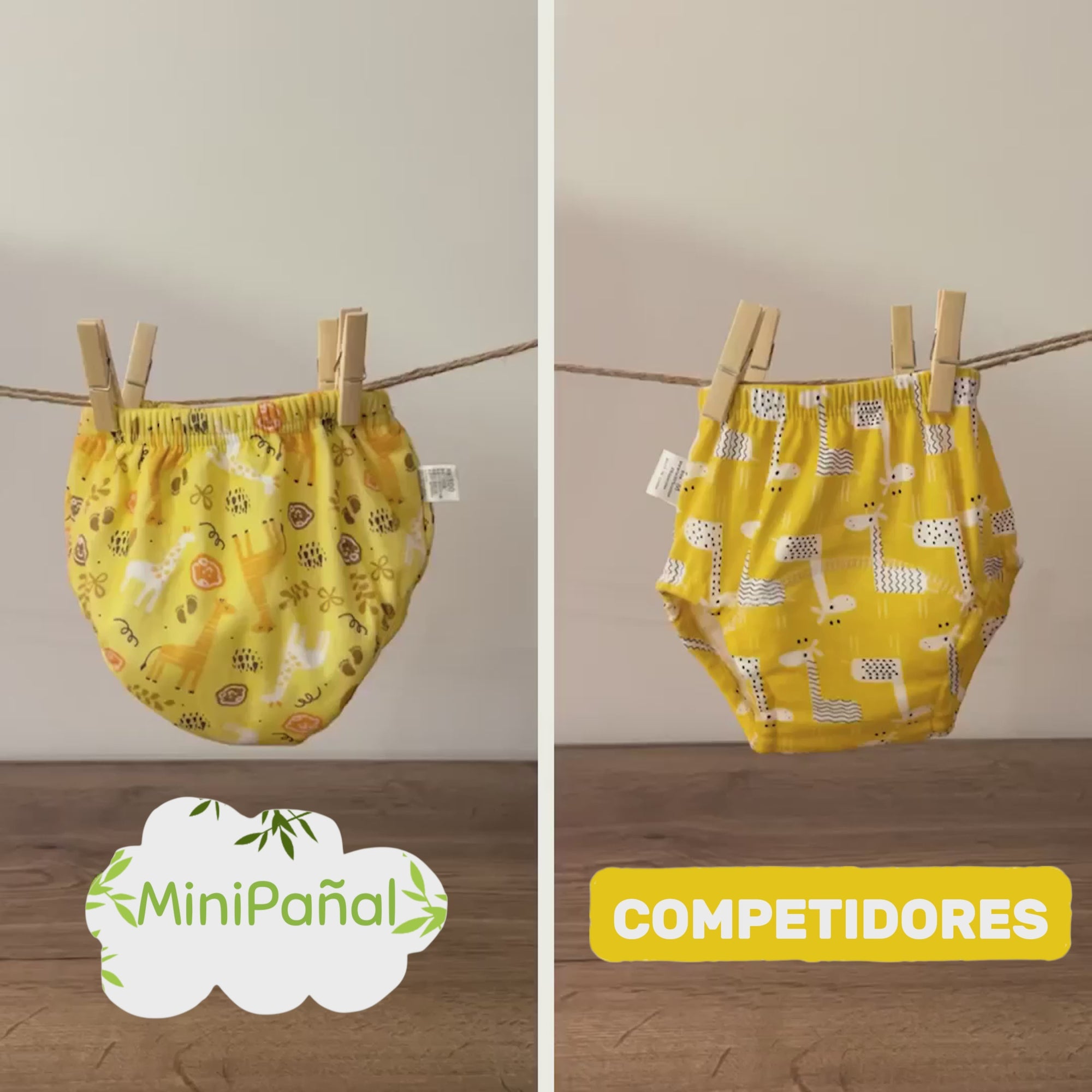Las bragas Minipañal, con sus motivos coloridos y alegres, convierten el aprendizaje de la higiene en un momento feliz. Más que un simple pañal, acompañan al niño en su transición de bebé a MAYOR, dándole confianza y orgullo en cada etapa.